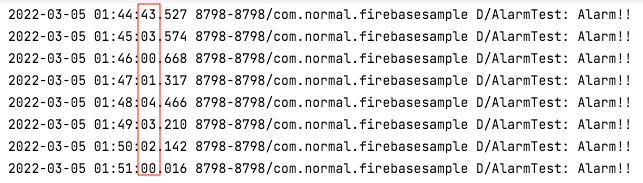 몇 시간을 테스트를 해볼 수는 없어서 다른 방법을 써서 요구사항을 적용했고 ACTION_TIME_TICK이라는 인텐트 필터로 브로드캐스트를 이용해서 적용하였다 그 부분과 관련된 내용은 다음에..