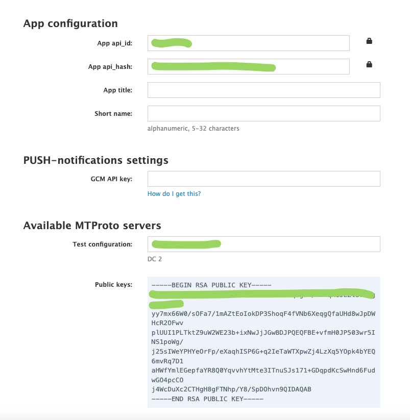 정보들은 하기 화면과 같으며 App api_id와 App api_hash는 앱 개발 시에 앱에서 사용되게 된다.