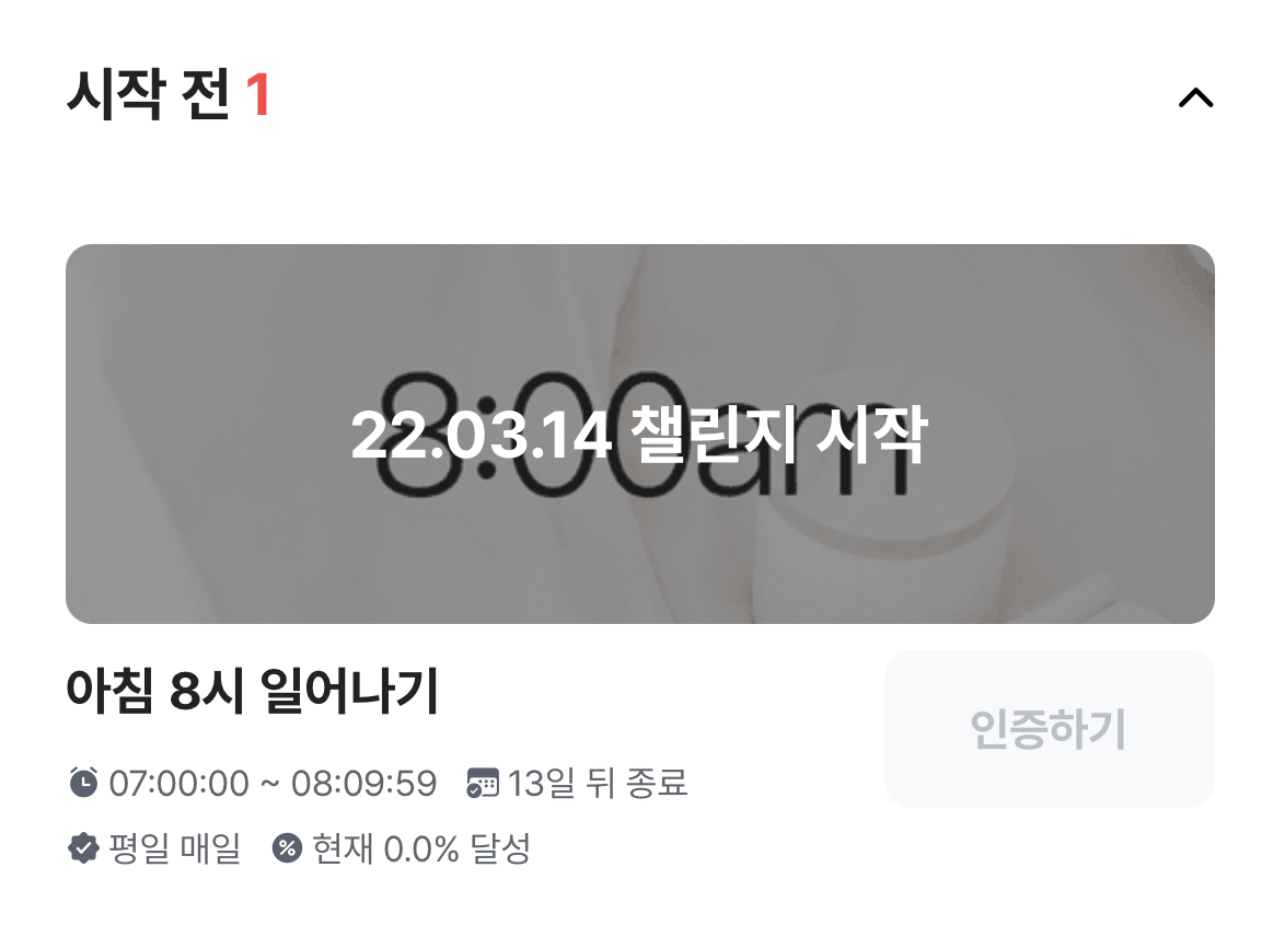 - 03.14 다음 주 월요일부터 아침 8시 일어나기 시작 100% 달성 하자