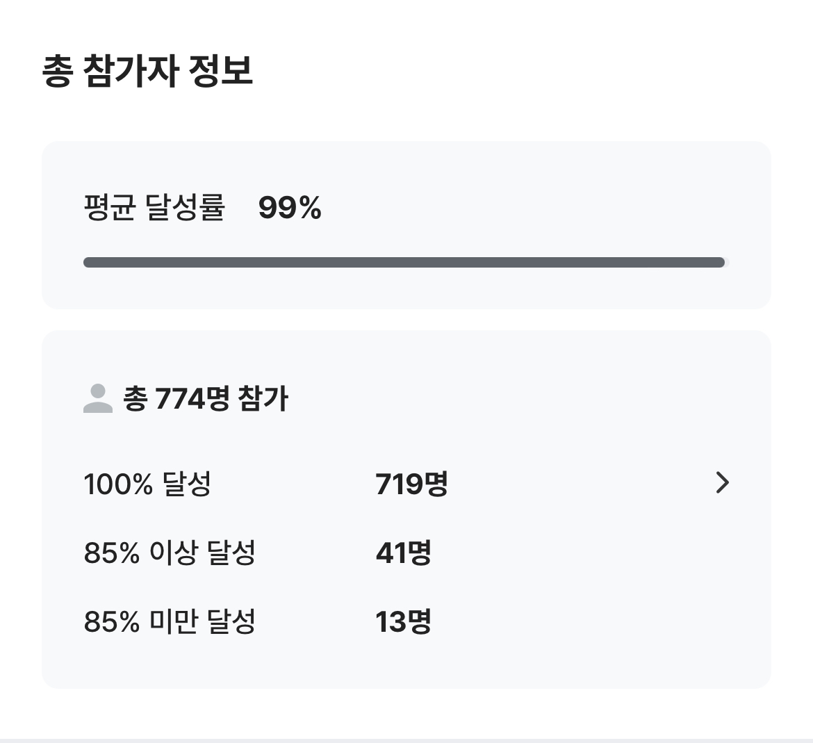 - 85% 미만 달성 참가자가 늘어나야 상금이 더 많아 질듯
