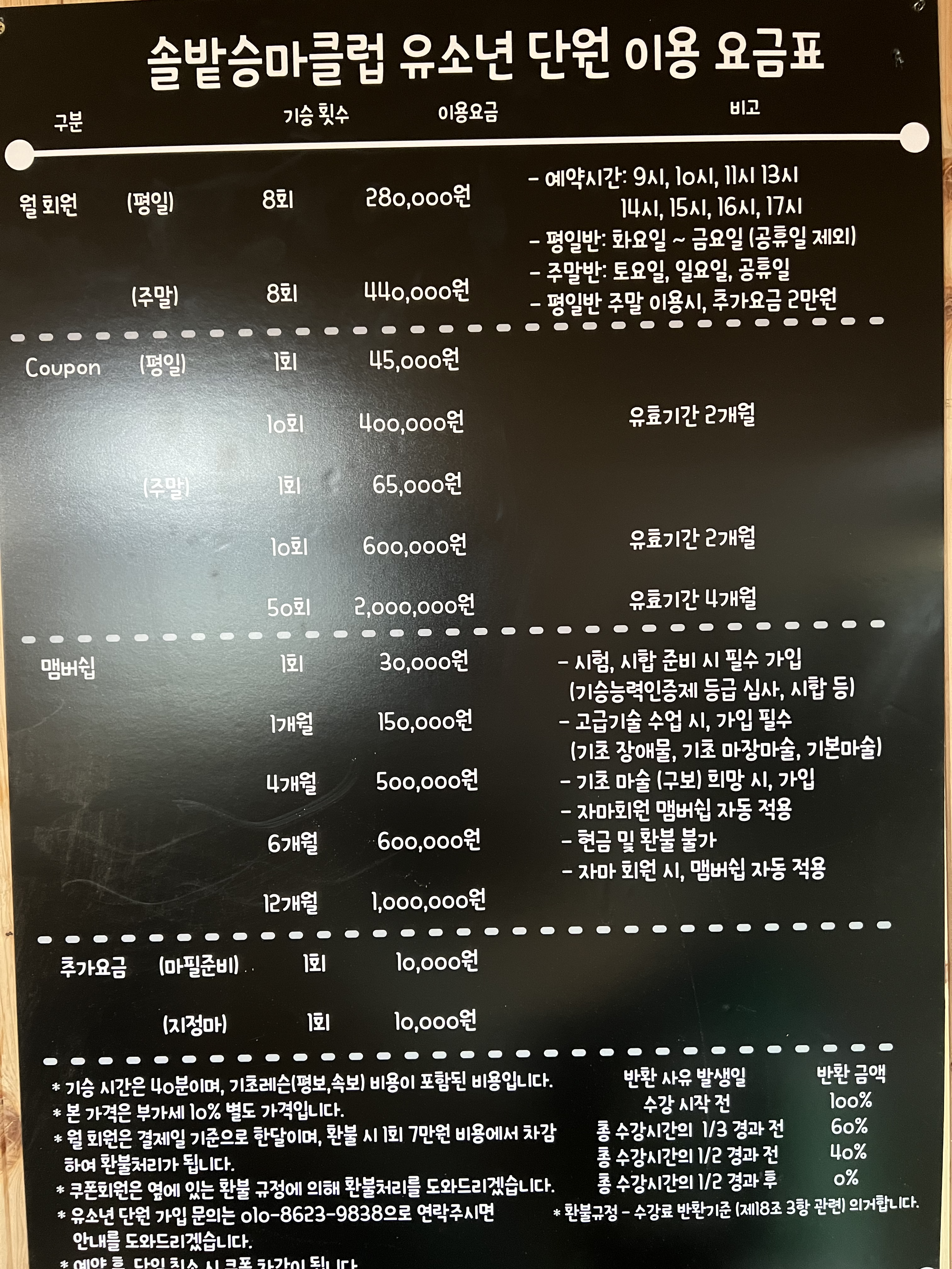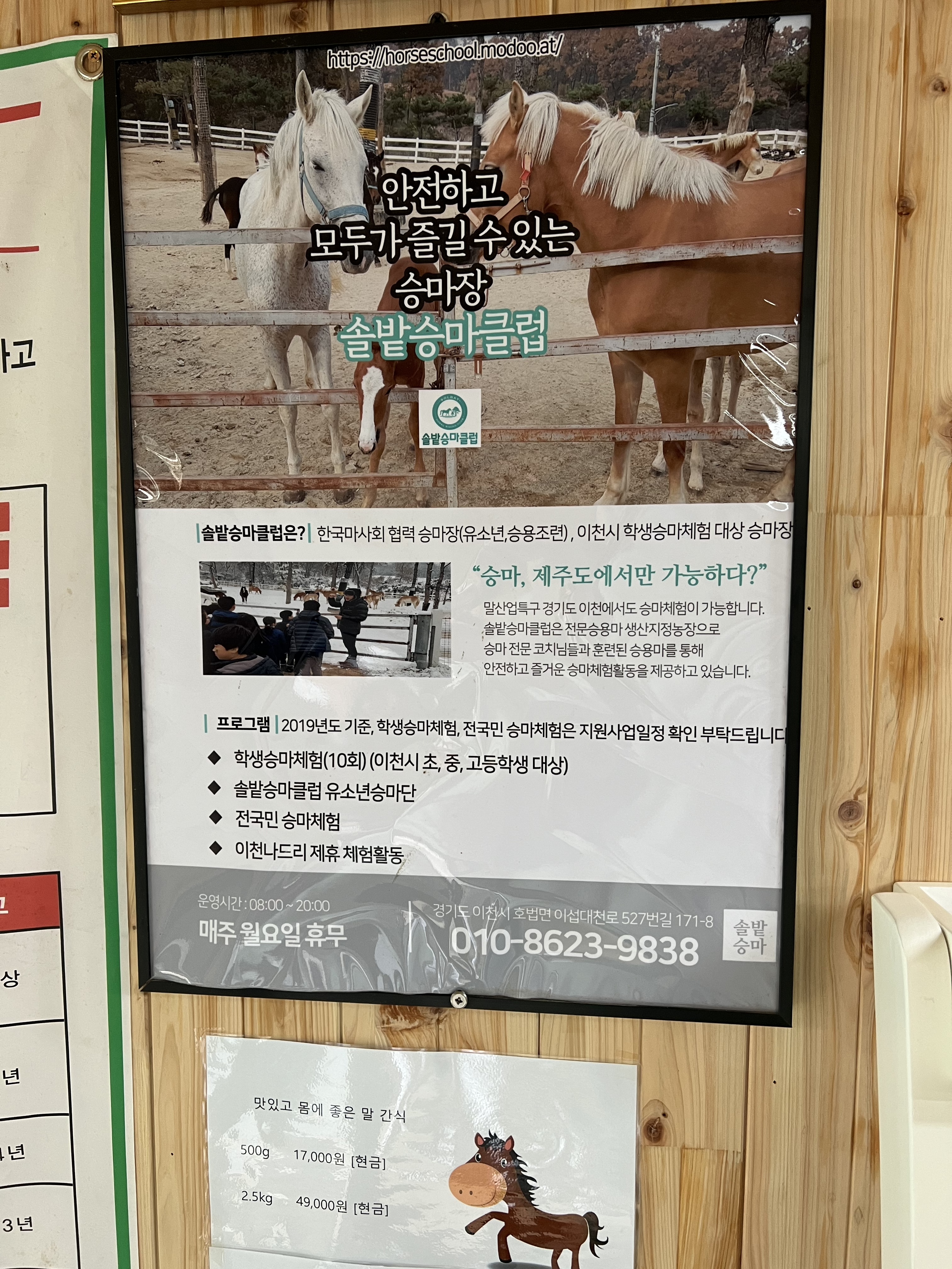 관계자분들도 친절하고 설명도 많이 해주시고 승마장도 관리가 잘 되어 있는 거처럼 보였다. 단체로 체험하는 건 많이 안 해보신 건지 모르겠지만 진행이 조금 어설퍼 보이긴 했지만 안전상에나 승마체험 자체에는 문제가 느껴지지는 않았다!