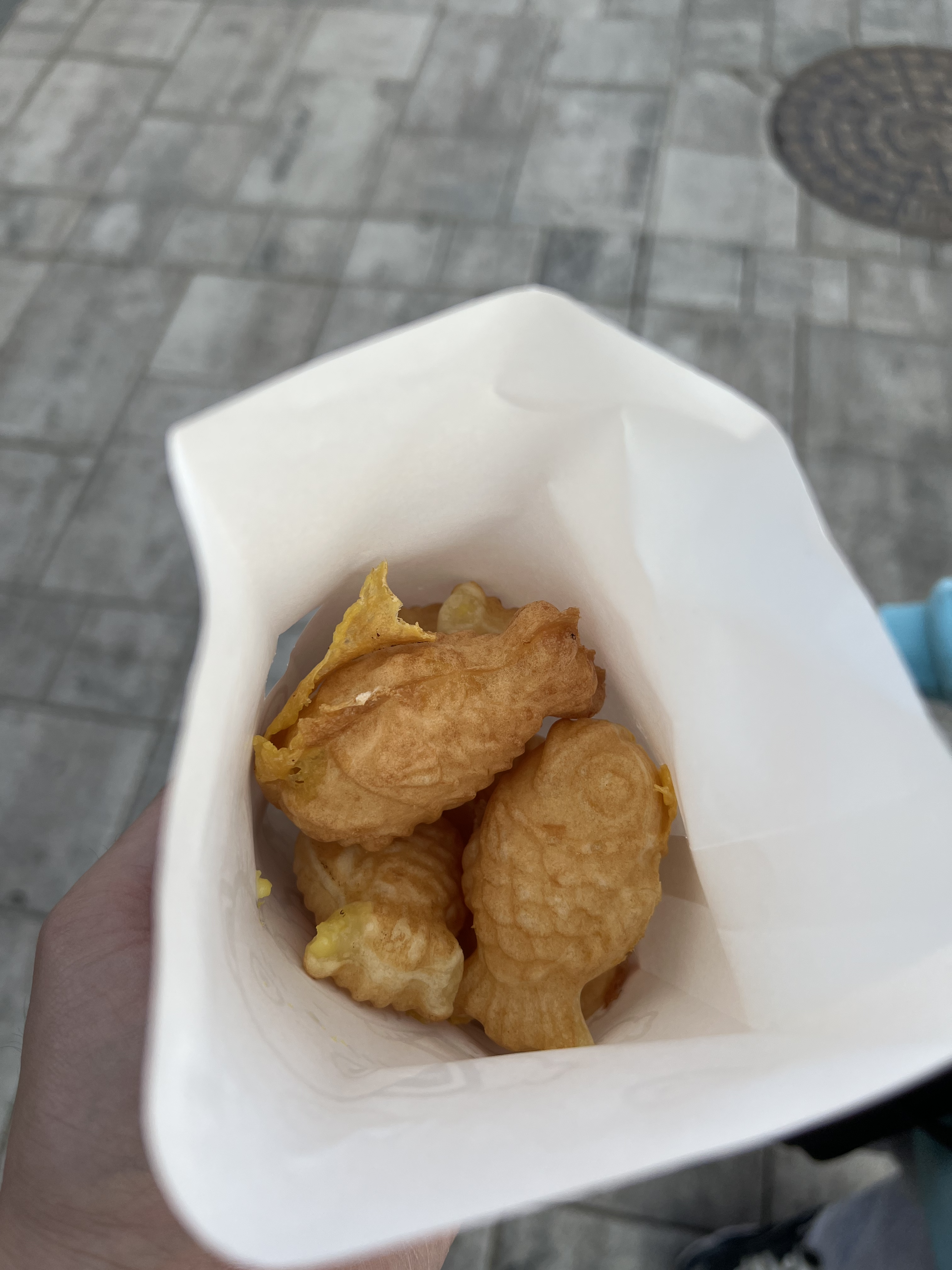 붕어빵은 여러 종류가 있었지만 팥을 별로 좋아하지 않아 슈크림 붕어빵을 샀고 맛은 맛있었다.