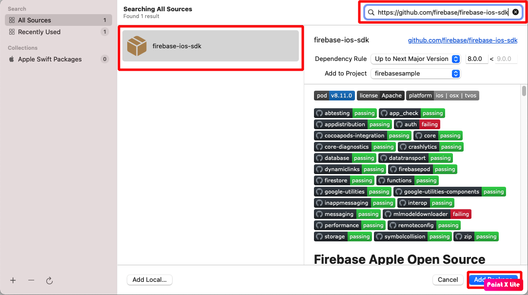 - 하기 url을 복사하여 Add Package Dependency를 통해 다음 화면으로 이동한다.