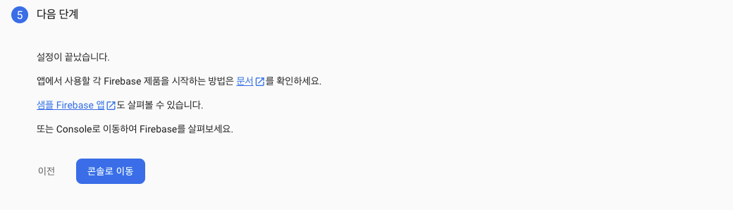 Firebase 프로젝트 생성은 하기 링크의 이전 글을 참고