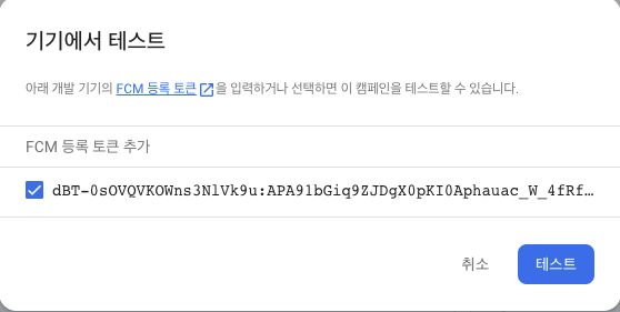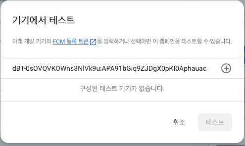 - 앱에서 가져온 토큰을 복사하여 붙여넣기 후 +버튼을 눌러 토큰을 입력하여 테스트 버튼을 누르면 완료